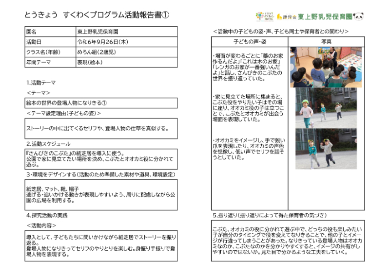 令和6年度 東上野乳児保育園では